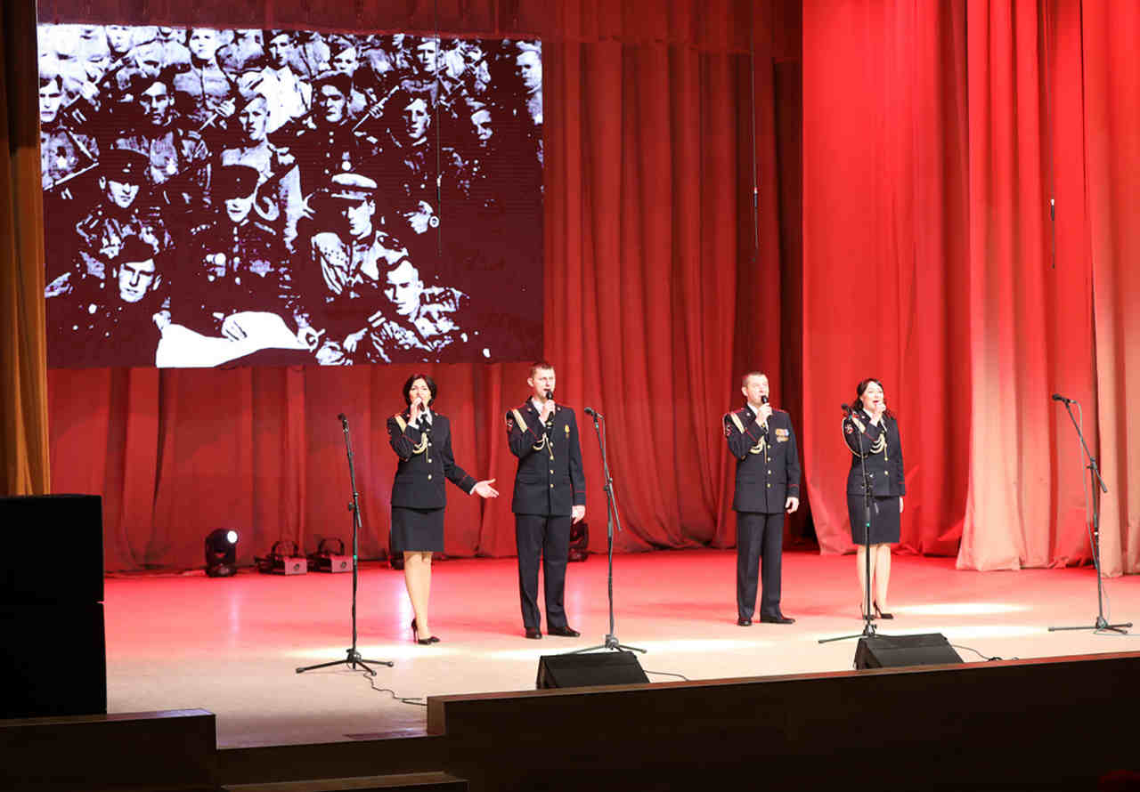 Урок мужества начался с дефиле духового оркестра «Золотой эполет» под маршевую музыку и продолжился выступлением ансамбля ГУВД «Альянс».