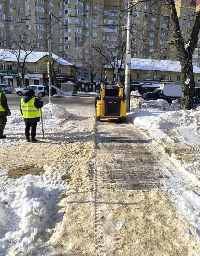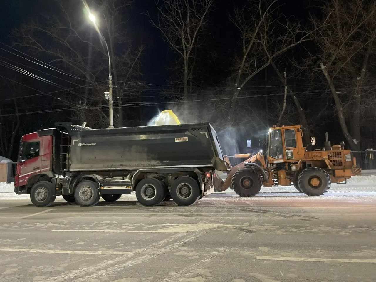 Днём и ночью продолжают сгребать и сметать снег комбинаты благоустройства Воронежа