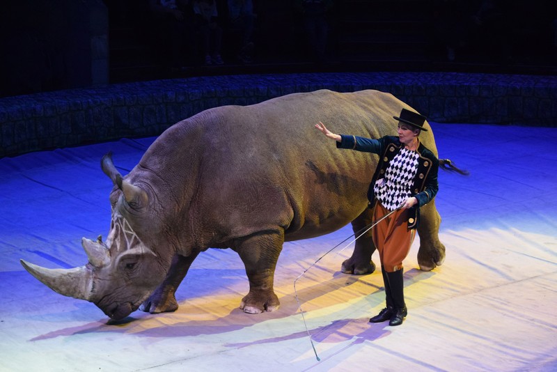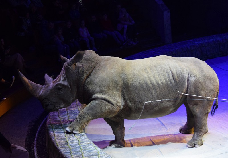 Отдельно хотелось бы выделить номер «Единорог» под руководством Елены Федотовой. Как выяснилось, Мафуньян – единственный дрессированный носорог в мире.