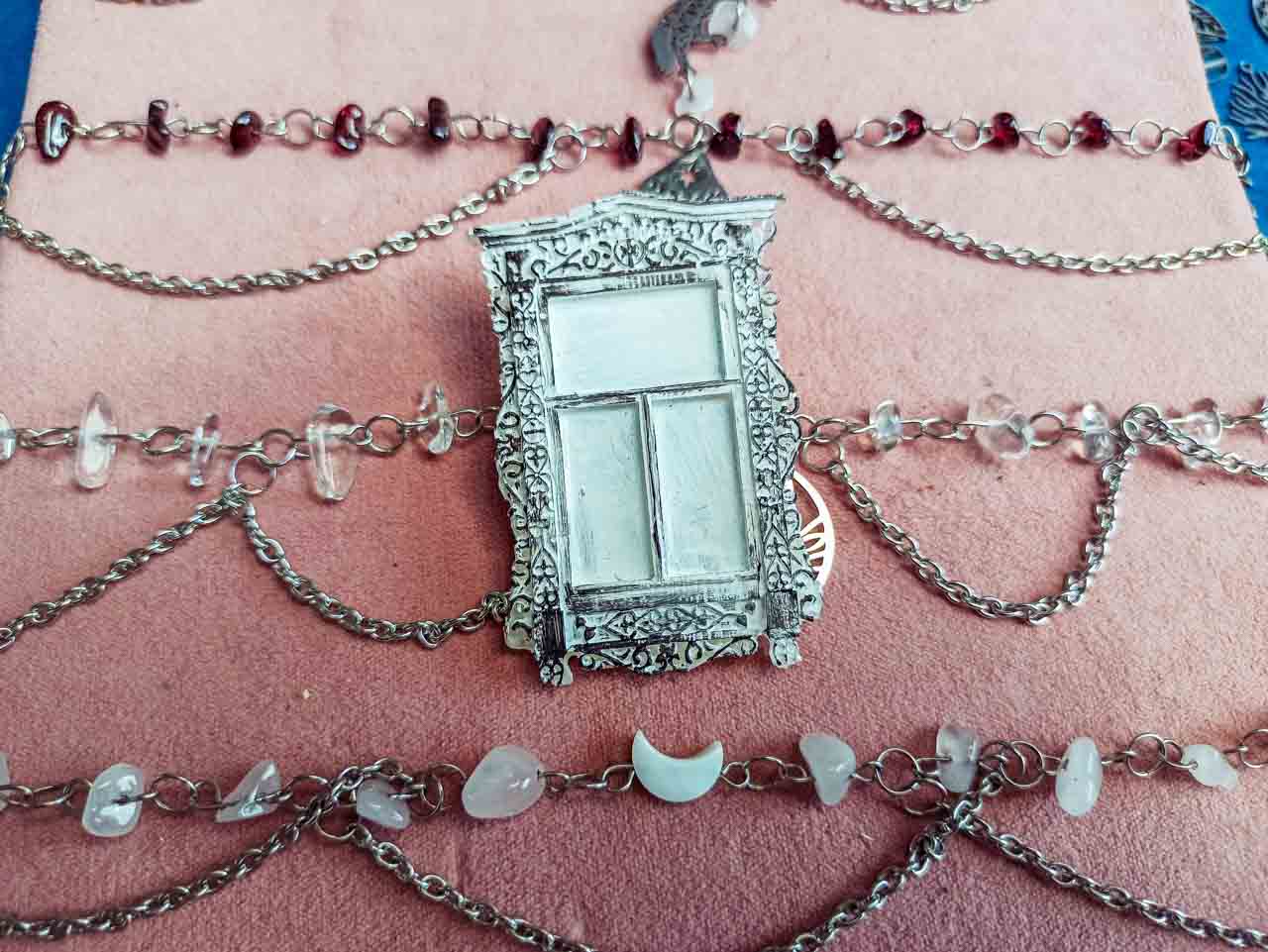 Среди яркого разнообразия выставки ручной работы особенно выделялись необычные украшения − миниатюрные «окошки», словно сошедшие со стен старинных деревенских домов. Серьги, кольца и кулоны с резными узорами притягивали взгляды посетителей, будто предлагая заглянуть в уютный мир русской сказки.
