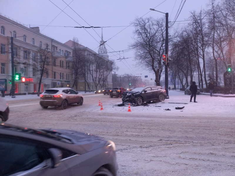 Полиция проводит проверку аварии, произошедшей сегодня утром в разгар снегопада у Кольцовского сквера в Воронеже, сообщили в ГУ МВД по региону 29 декабря.
