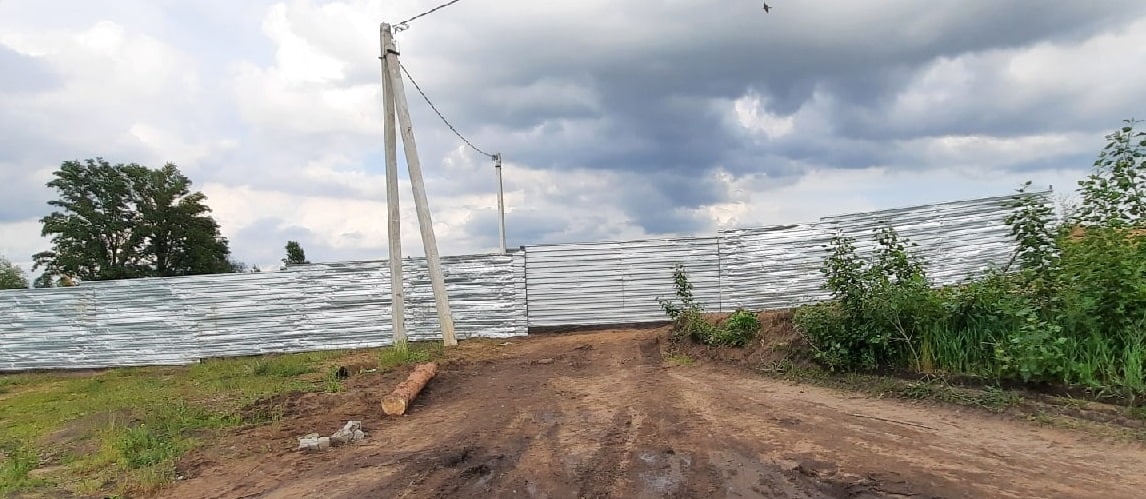 Здесь в непосредственной близости от озера проводятся работы по планировке частных земельных участков, а по периметру уже установлено длинное металлическое ограждение.