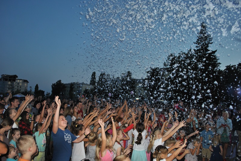 В субботу на обновленной Советской площади главными были не ее фонтаны, хотя воронежцы успели развлечься и в них, а пенные пушки, которые с головой погрузили жителей города в белые облака. Под песни мужского хора пена буквально вырывалась из «массового оружия» и накрывала площадь огромными тающими снежинками. Воронежцы пели, танцевали и делали селфи под напором белой пелены.