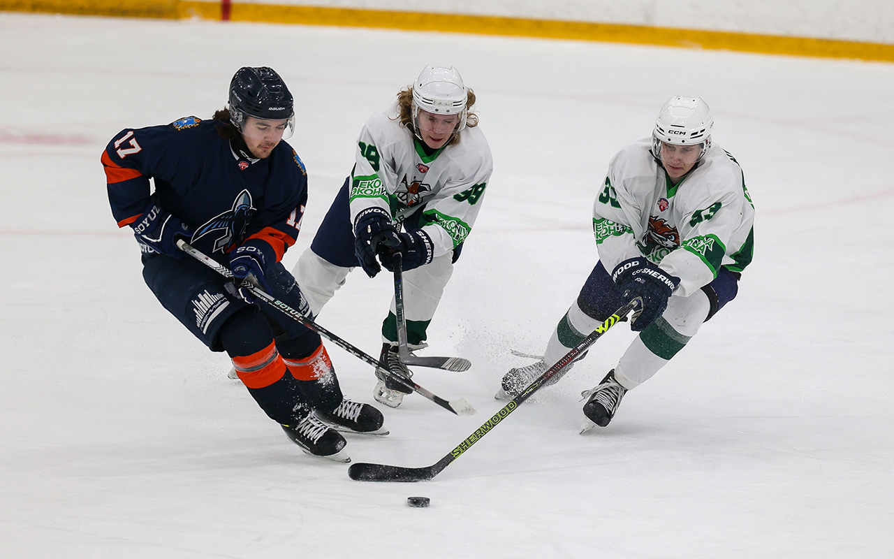 Первая встреча прошла с весьма заметным преимуществом фарм-клуба «Бурана». В середине стартового периода гостей вывел вперед Максим Колесников. А во второй трети матча бобровские хоккеисты отправили еще две безответные шайбы в ворота Кирилла Трошкина. Их авторами стали Кирилл Николенко и Данил Синюков.