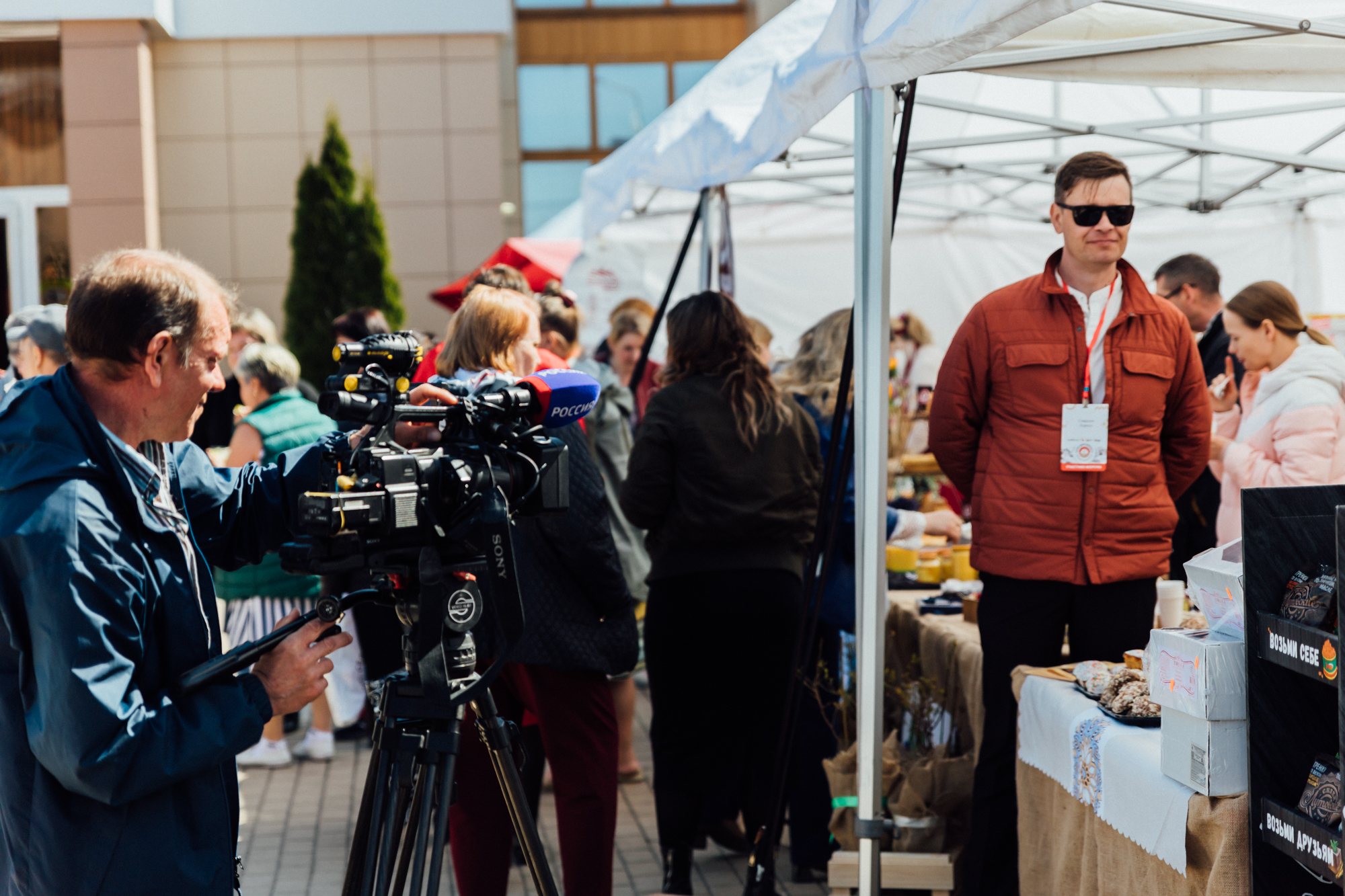 При входе на территорию проведения Форума гостей и участников встречала экспозиция предпринимателей Новоусманского района, в рамках которой каждый посетитель мог продегустировать местную продукцию.