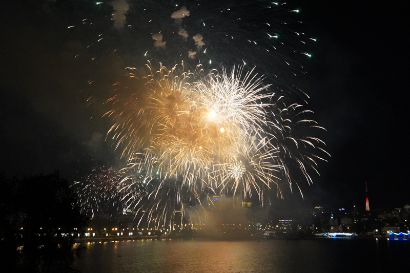 Толпа воронежцев встречала каждый залп криками «ура» и бурными овациями. Среди традиционных узоров, которые появляются в небе каждый праздник – хризантемы, ивы, короны и пионы, – воронежцы увидели и новые элементы. Всего было выпущено порядка 2075 залпов. Фейерверк длился около 13 минут.