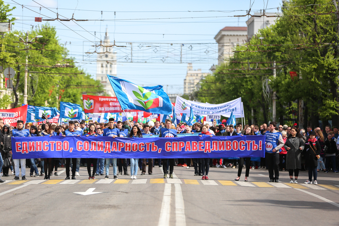 По традиции празднование Дня весны и труда началось с организованной профсоюзами демонстрации, общий девиз которой в этом году: «За справедливую экономику в интересах человека труда!». Трудовые коллективы предприятий и учреждений, профсоюзный актив, члены политических партий, общественных и молодежных движений, представители органов власти прошли по проспекту Революции от здания ЮВЖД до Никитинской площади под звуки духового оркестра.