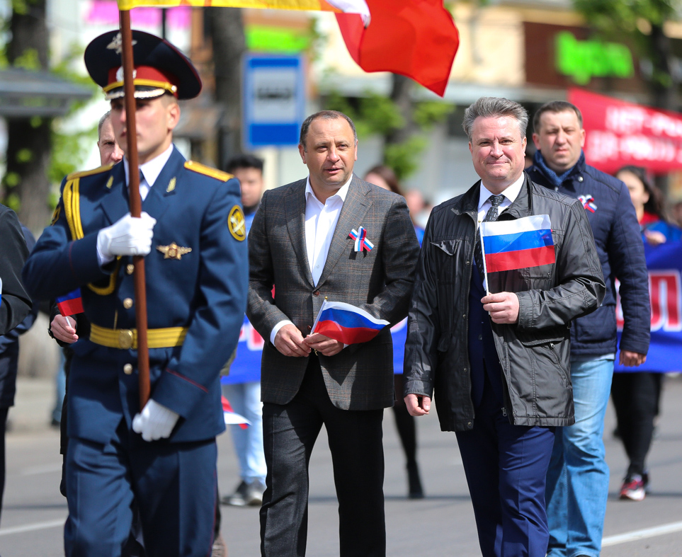 Колонну демонстрантов возглавили представители власти области и города – и. о. губернатора Виталий Шабалатов, мэр Воронежа Вадим Кстенин, председатель областного законодательного собрания Владимир Нетесов и глава городской Думы Владимир Ходырев.