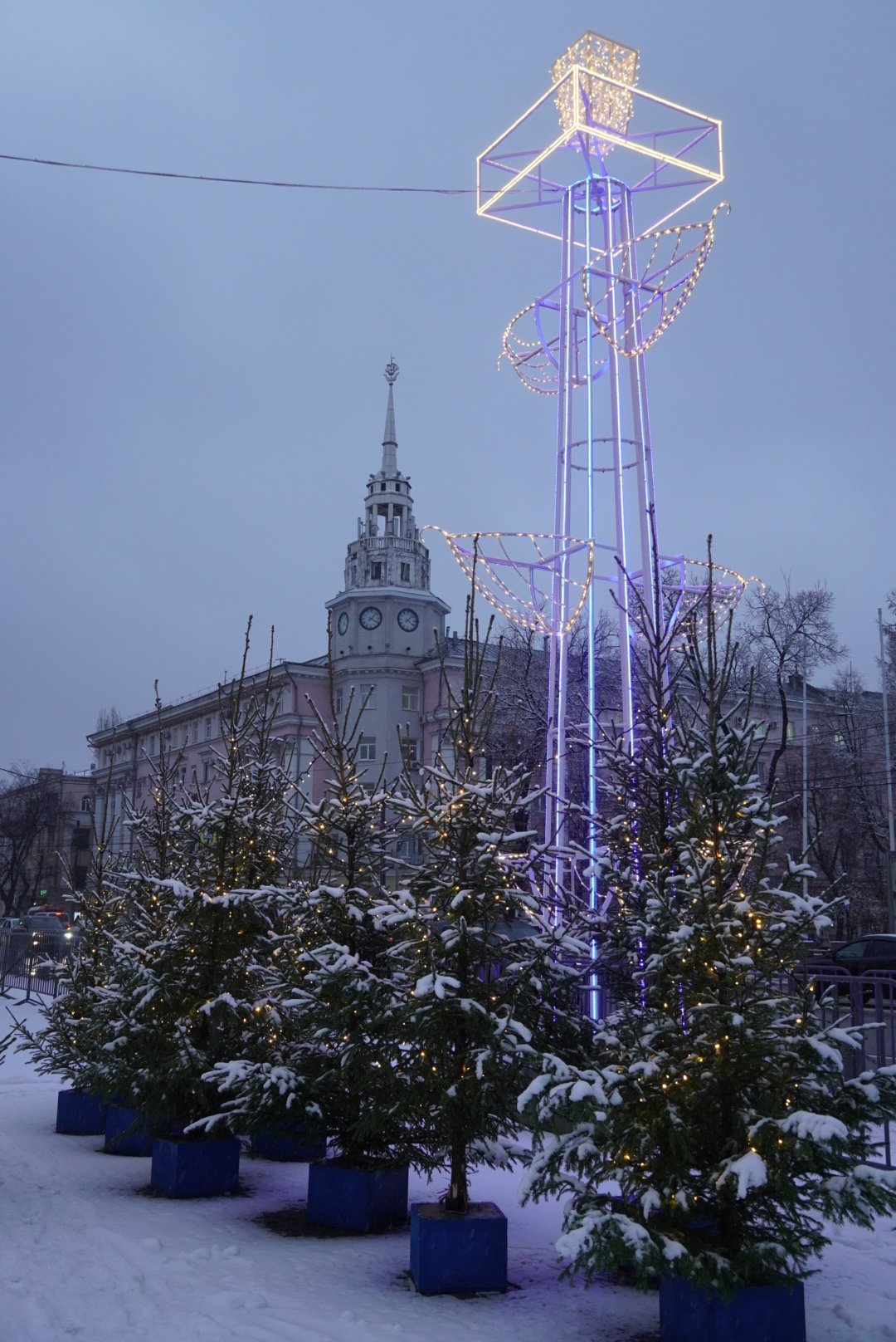 Главная площадь города в этом году украшена в петровской тематике: в стране празднуют 350-летие со дня рождения императора Петра Великого – человека, который дал начало российскому флоту и заложил в Воронеже верфи. Юбилей знаковой для столицы Черноземья личности в городе отмечали с размахом еще 28 мая, в тематическом ключе оформляли и другие общегородские события. В концепции новогоднего убранства площади Ленина тоже предусмотрели петровскую тему.