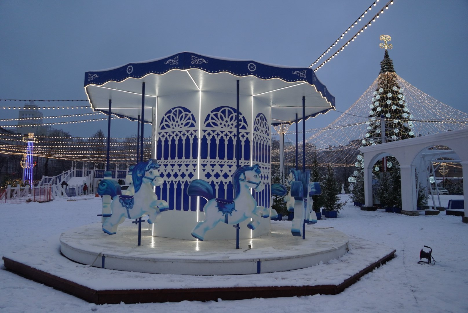 В этом году на площади Ленина не будет катка, зато появится место для других развлечений: оборудован аттракцион «Русская горка» (22-метровый спуск, куда нужно приходить со своими тюбингами и ледянками), на котором активности будут доступны при любой погоде. Можно будет прокатиться на карусели и покачаться на качелях. Все аттракционы имеют сертификаты безопасности.