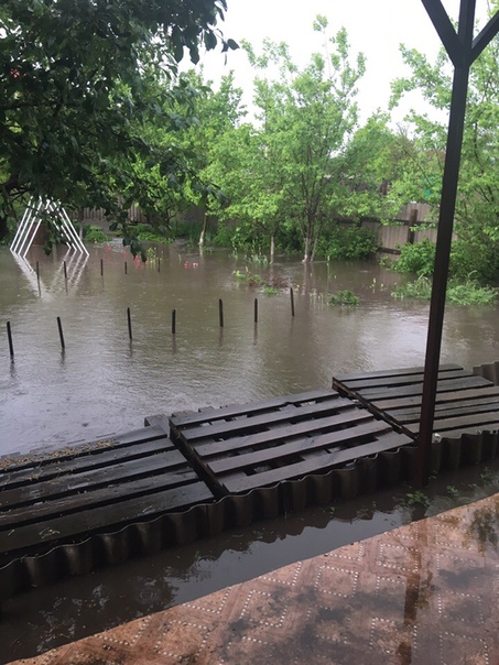 Большая вода залила улицы, дворы, огороды и даже кафе. Это видно из многочисленных фотографий и видеороликов. Машины чуть ли не как лодочки плывут по воде, иные приусадебные участки превратились в пруды. А один из горожан сетует, что у него водой затопило недавно высаженную рассаду. Другой рассказывает, как в открывшуюся дверь подъезда хлынула потоком вода.