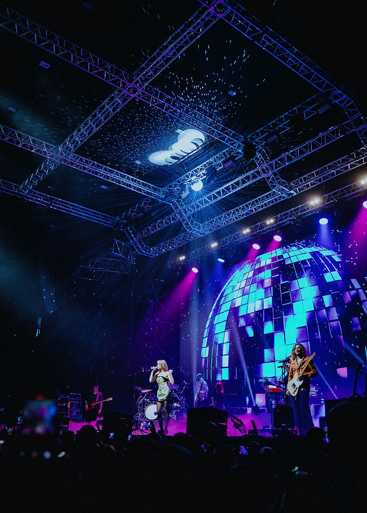 Воронежцы бурно встречали каждую композицию с отрывались под зажигательные треки. Вместе с обворожительной Таней Ткачук воронежцы пели хором и хиты из прошлого альбома «Из цветов и темноты», выпущенного в 2022-м году - «Курточку», «Ветер меняет направление», «Снегири» и конечно же кавер на один из главных хитов легендарной группы «Гости из будущего» «Зима в сердце», переосмысленный группой «Моя Мишель». В конце песни в зал посыпались искрящиеся в лучах света конфетти, что создало по-настоящему волшебную атмосферу.