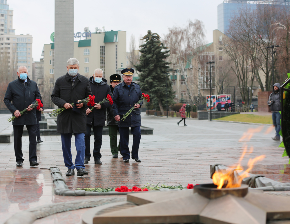 Отдать дань памяти безымянным и пропавшим без вести воинам к Вечному огню пришли губернатор Воронежской области Александр Гусев, глава Воронежа Вадим Кстенин, председатель городской думы Владимир Ходырев, представители муниципальных и региональных органов власти, правоохранительных и силовых ведомств, общественных и ветеранских организаций, а также духовенства.