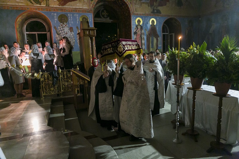 Теперь я хотел бы обратить внимание на очень важный момент – что происходит с Господом Иисусом после того, как его человеческое естество умирает? В тексте Пасхальной службы есть такие слова: «во гробе плотью, а во аде с душою как Бог, в раю с разбойником и на престоле был Ты, о Христе, со Отцом и Духом, всё наполняя, неописуемый» (текст тропаря Пасхального канона в русском переводе). Господь своей человеческой душой спускается в ад, чтобы Своей Божественной властью лишить его силу и вывести души праведников в рай.