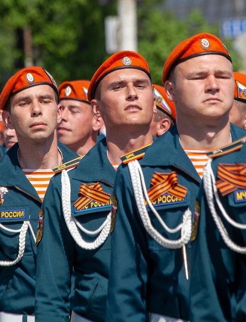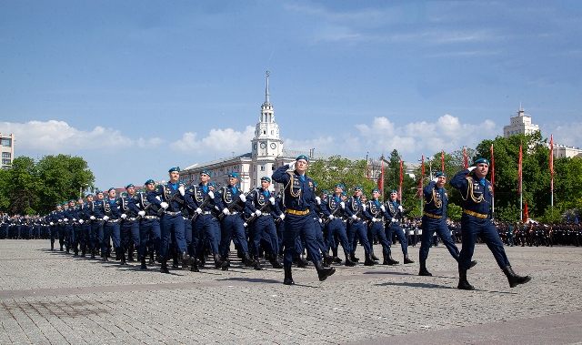 В нём приняли участие военнослужащие воинских частей воронежского гарнизона, сотрудники силовых структур и ведомств, спасатели, курсанты и юнармейцы – всего 1850 человек. Они вынесли государственный флаг Российской Федерации и Знамя Победы. Принимал парад Александр Перязев, а командовал – заместитель начальника Военно-воздушной академии им. профессора Н. Е. Жуковского и Ю. А. Гагарина, генерал-майор Александр Нагалин.