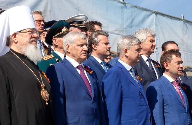 Во время торжественного мероприятия временно исполняющий обязанности губернатора Воронежской области Александр Гусев и командующий 20-й Гвардейской общевойсковой армией, генерал-майор Александр Перязев поприветствовали ветеранов, участников боевых действий, тружеников тыла и всех воронежцев. Затем под звуки гимна Российской Федерации и залпы оружейного салюта участники парада двинулись торжественным маршем.