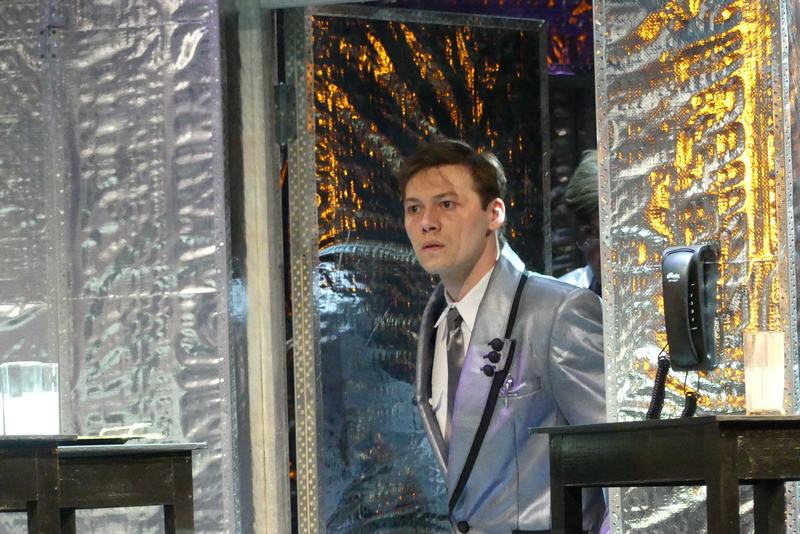 В тексте Стругацких – два мира, которые, на первый взгляд, никак не пересекаются. Мир Управления и таинственный Лес. Две истории о героях, один из которых хочет уйти из Леса, а другой – попасть туда. На сцене их жизни показаны параллельно и без антракта. Управление – это множество кабинетов, складывающихся в какой-то бесконечный лабиринт, из которого нет выхода. А Лес «решен» с помощью декорации в виде зеленой стены и болотистой местности, которая также «затягивает» и не позволяет выбраться. Это спектакль о том, как Перец и Кандид пытаются вырваться из абсурдного мира. Над сценографией работала Полина Рак.