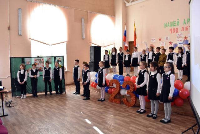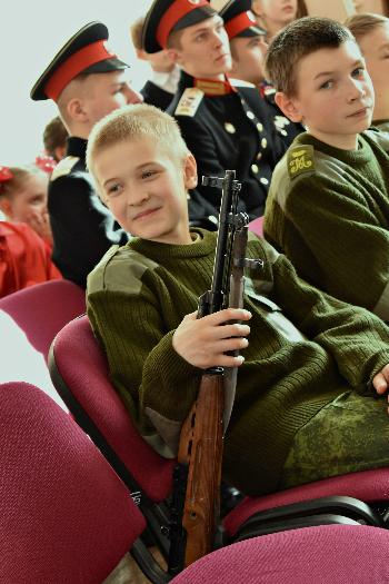 Ребята пришли в школу в форме с образцами штатного вооружения. Кадеты рассказали школьникам о своей учебе и службе, выступили с концертными номерами, показали парадные приемы обращения с карабинами.