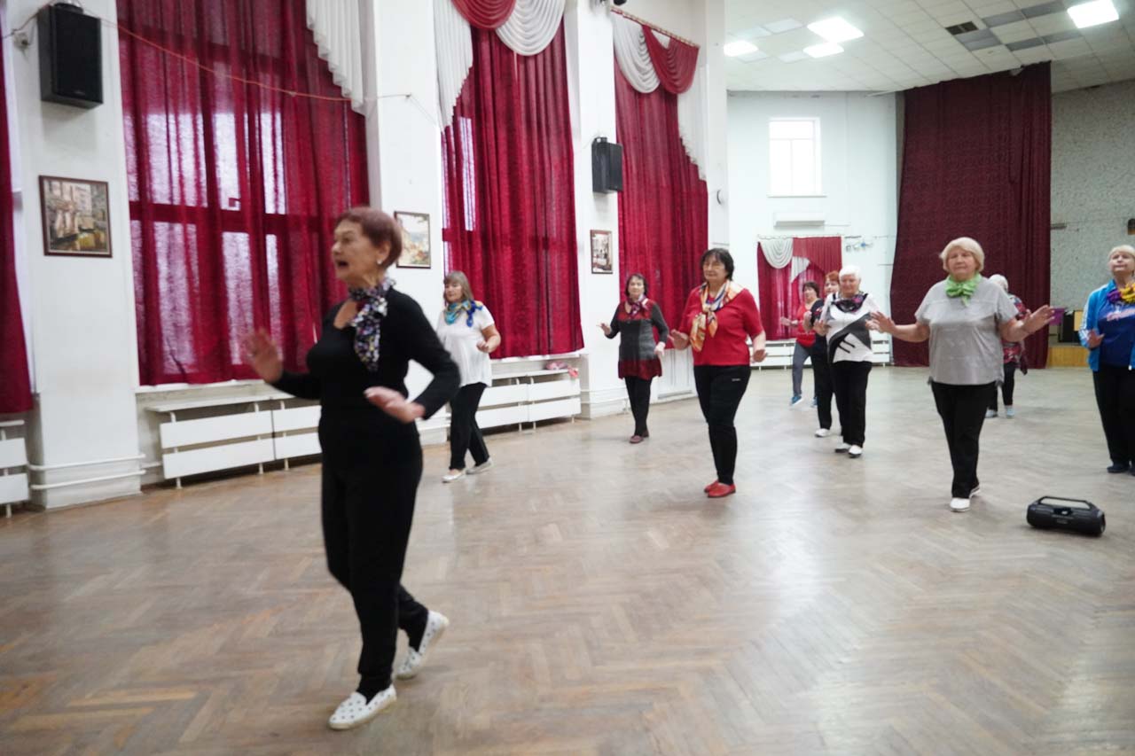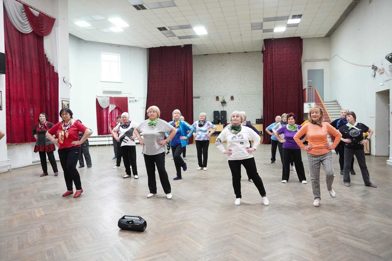 В 11.00 четверга танцевальный зал КДЦ «Северный» наполняется женщинами в яркой спортивной одежде. У каждой на лице красивый макияж, а на шее элегантно повязан шарфик. Со стороны встреча напоминает девичник, на котором собрались подруги. Все улыбаются и смеются. Кажется, что они пришли на праздник.