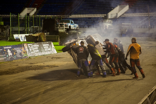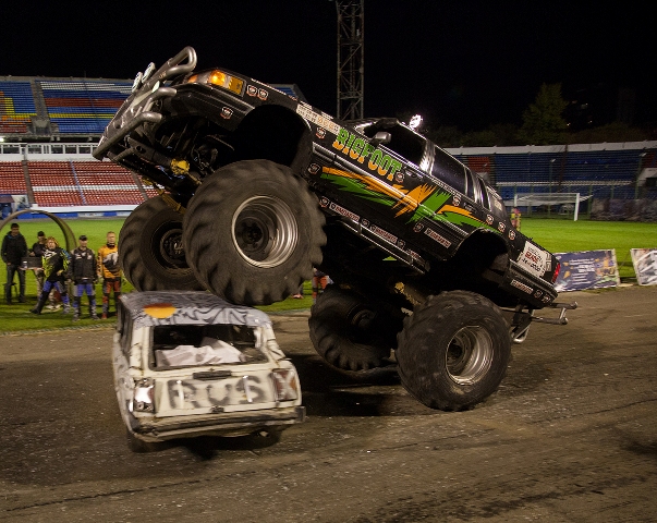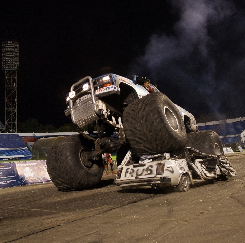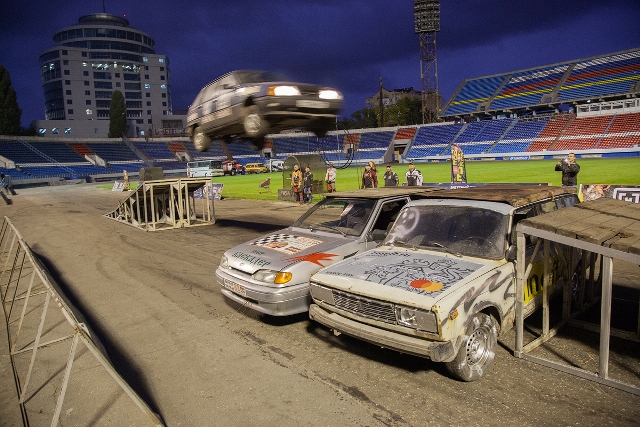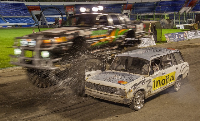 На стадионе появляется битая «четверка»: каскадеры устраивают погоню за ней. Зрителей держат в напряжении десять минут, а потом показывается машина-монстр. Она в одиночку пытается «закатать» легковушку.