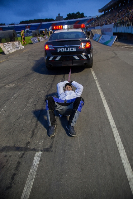 Это финальный номер на сегодня. Каскадеры выходят на поклон. Толпа поклонников просит их сфотографироваться и непрерывно аплодирует. И это, наверное, лучшая награда для трюкачей.