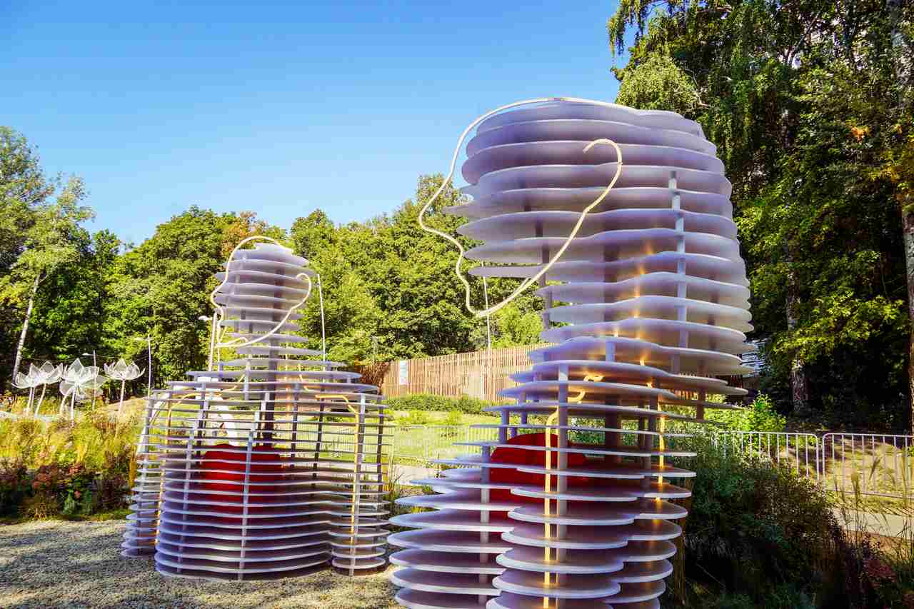 Не только сами конструкции, но и все окружение подчеркивает чистоту и нежность семейных отношений. Так, например, лаванда символизирует женственность и сохранность семейного очага, а красные гортензии – ту яркую страсть, что укрепляет любую пару. Не забыли и о других составляющих фундамента семьи – изобилии и материальном достатке, которые символизируют многочисленные злаковые. Разумеется, все эти растения не просто проживут еще не один год, а раскроются пышнее и ярче, ведь эта композиция останется в парке и после фестиваля.