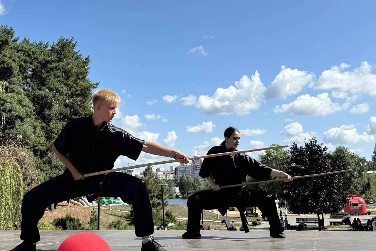 Воспитанники воронежских спортшкол и студий под руководством опытных тренеров подготовили для гостей мероприятия показательные выступления по ушу, акробатике, гимнастике и другим видам. Нелишне напомнить и о том, что 2024-й Указом Президента объявлен Годом семьи. В нашем городе существует Центр развития семейной акробатики, девиз которого «Единая цель, единая семья, единая команда!». Руководит им доцент ВГАС Екатерина Черенкова. Номер «Не прекращай мечтать», представленный семьями, которые занимаются акробатикой, получился очень нежным и вызвал улыбки у гостей парка.