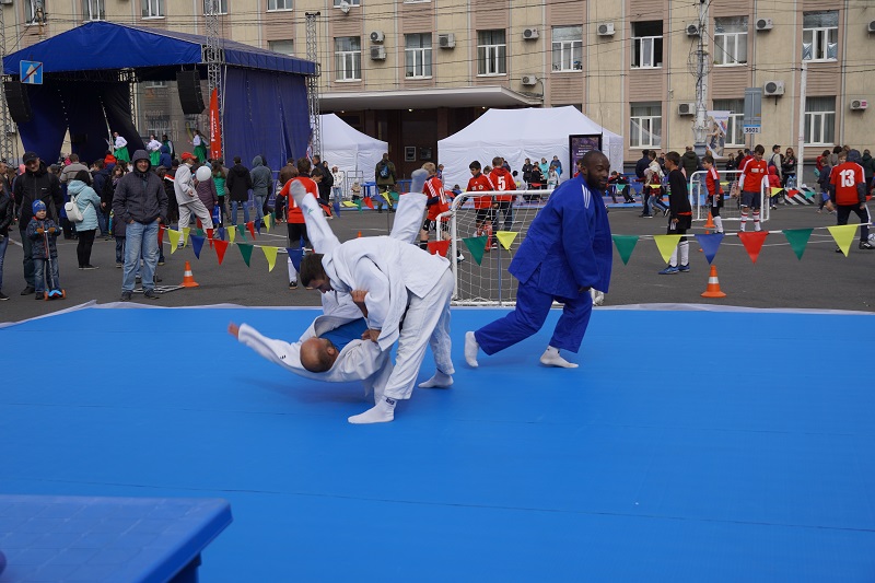 Напротив кинотеатра «Спартак» проходит спортивный фестиваль, спортсмены приглашают всех желающих оценить их мастерство или даже присоединиться. Вот команда фехтовальщиков – у них всегда много зрителей, но вот попробовать себя в деле они не торопятся. Организаторы говорят – это безопасно, но если вы никогда не держали в руках рапиры, вам предложат потренироваться на манекене.