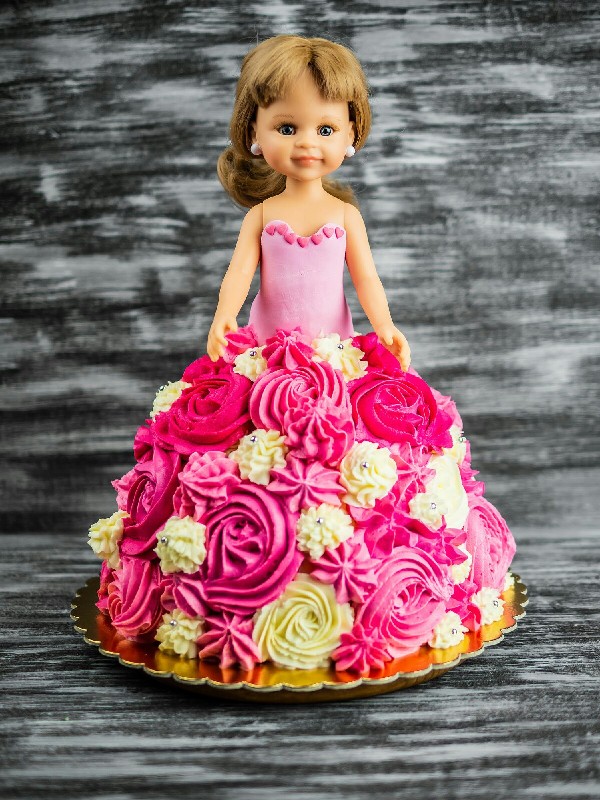 – Был один очень милый заказ: я делала торт-куклу. Причем кукла была похожа на маленькую именинницу. В изготовлении такой торт довольно прост на самом деле, хотя очень оригинален, – вспоминает свой необычный торт Ольга Нечаева. – Нижняя часть куклы изолируется, т. е. заворачивается в фольгу и пищевую пленку, чтобы при нарезке ее не повредили, а под туловище делается отверстие. Когда торт съеден, куклой можно играть. Мама девочки-именинницы припрятала даже платье для куколки, и дочка получила два подарка.