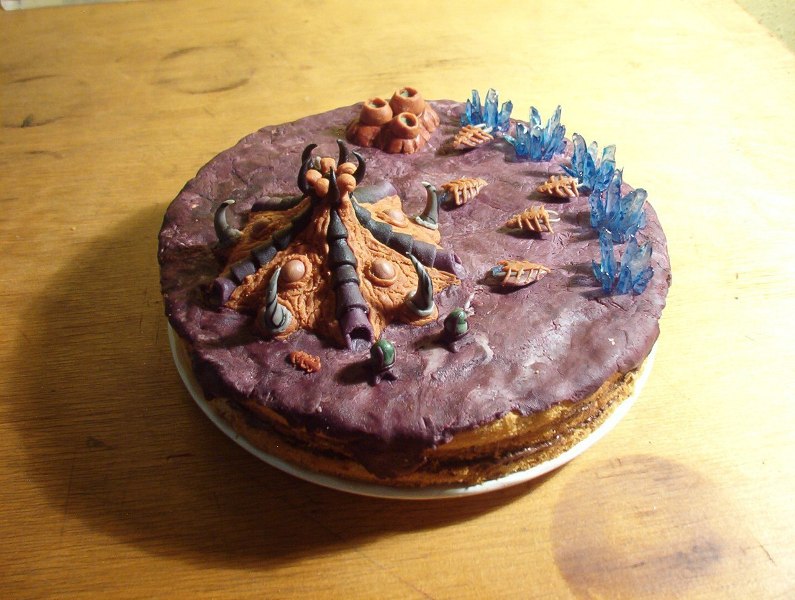 – Одна девушка прислала мне фотографию с… чем-то и попросила повторить. Признаться, я даже не понимала, что это такое – и не в плане украшения торта, а вообще. Какие-то с виду несъедобные коржи, больше напоминающие пирог, словно просто сваленные в башенку, а сверху – непонятные существа. Вроде не совсем скорпионы, но похожи на насекомых. «Рога» торчат… В общем, надо было сделать эту страсть. Я, конечно, не стала повторять это все в точности, и испекла торт в сиреневом цвете. Заказчица осталась довольна, теперь она мой постоянный клиент. А торт, как оказалось, называется Зергским. Его сделал своими руками фанат какой-то популярной компьютерной игры.