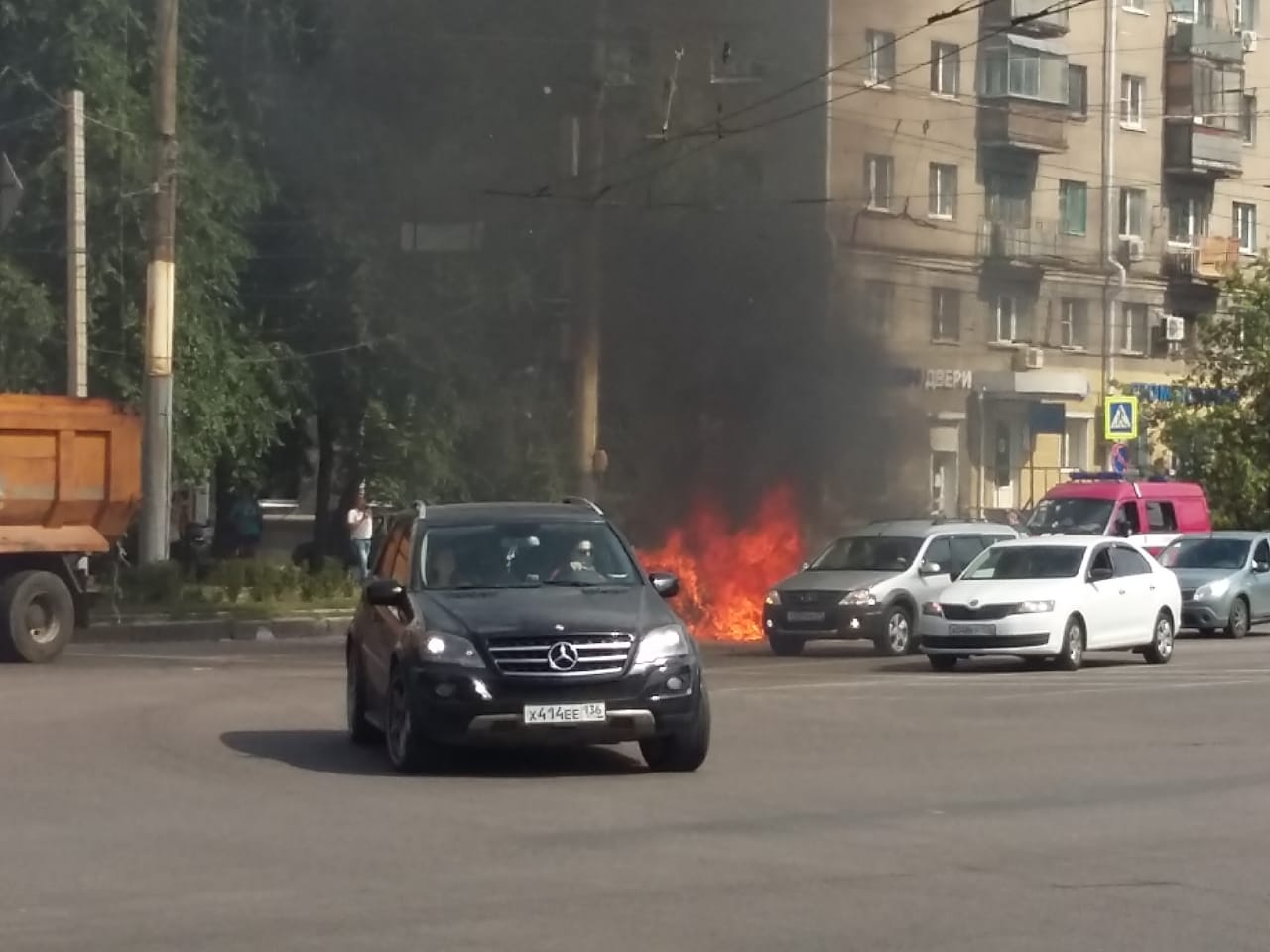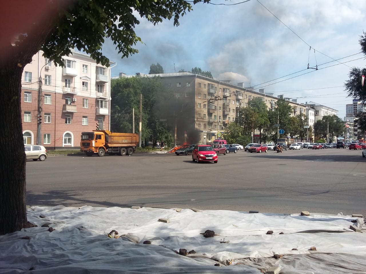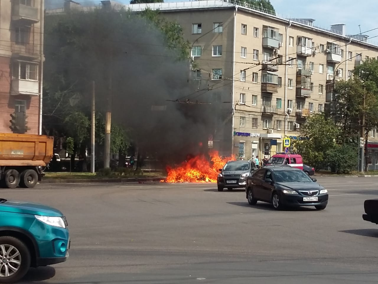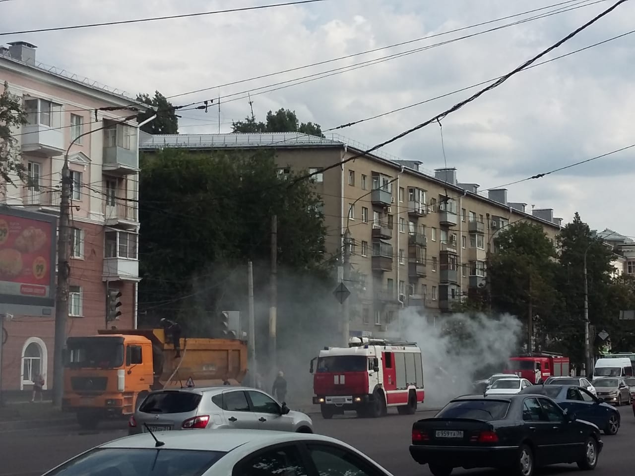 Встревоженные читатели «Горкома36» сообщают о возгорании грузовика в центре Воронежа.