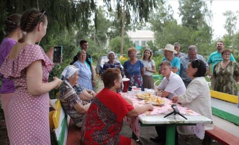 После водной прогулки Сардана Авксентьева поехала в поселок Каменка, чтобы посетить местный офис партии. Встреча с жителями быстро перешла в один из дворов. Тут на лавочке за одним столом оказалось сподручнее обсуждать местные проблемы.