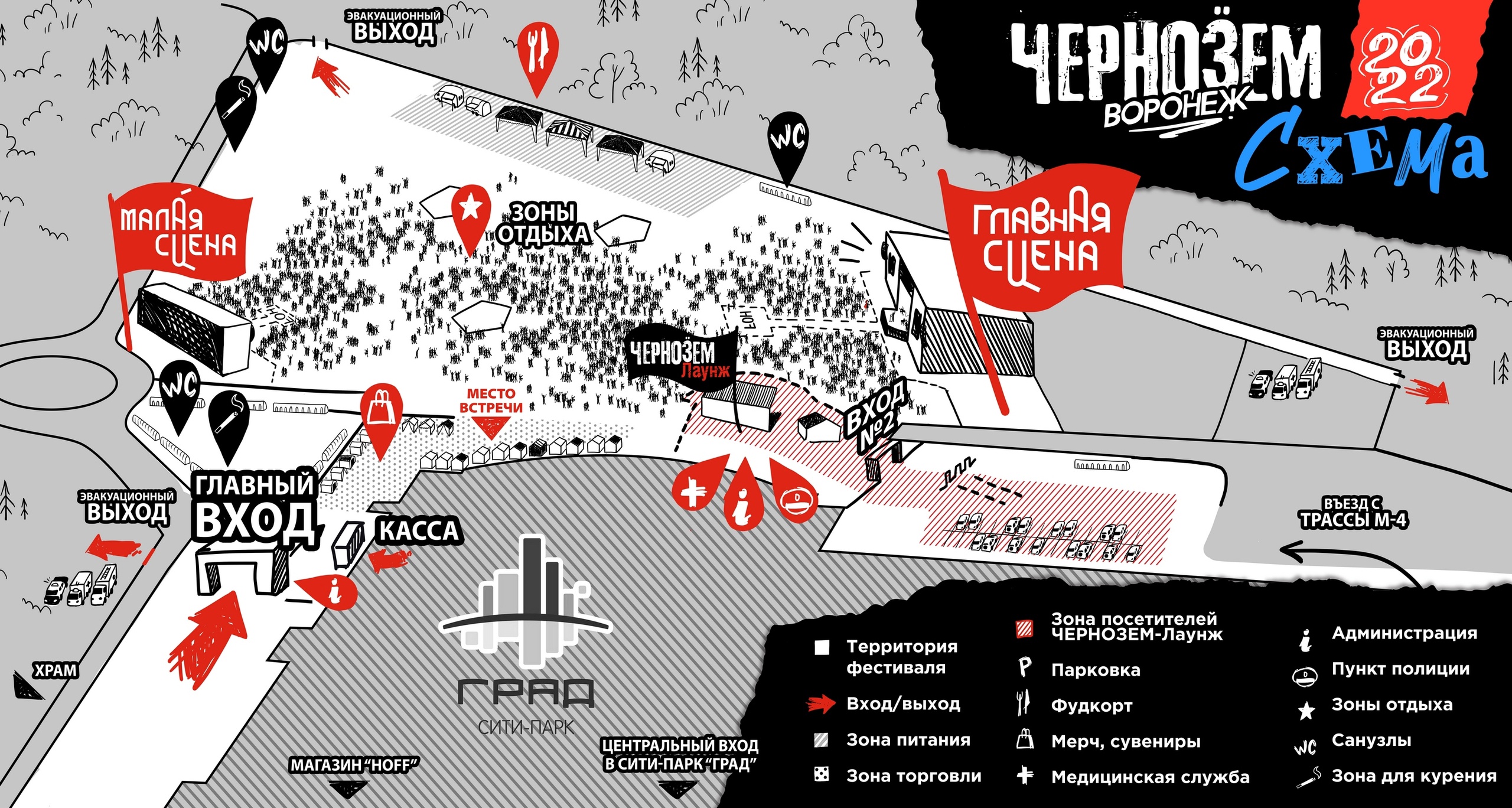 Вечером 17 августа в официальных соцсетях рок-фестиваля «Чернозем» были опубликованы подробные карты предстоящего форума. Фестиваль, напомним, пройдет 19-21 августа на открытой площадке рядом с сити-парком «Град».