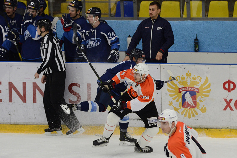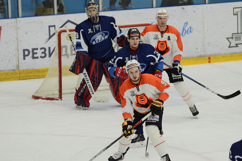 Дальше пошла игра на встречных курсах, практически без остановок. Преуспели в ней «ураганные», которые на 14-й минуте открыли счет. Выстрел Кирилла Слепца приняла на себя штанга, но Антон Малышев подхватил шайбу и отпасовал ее Владиславу Рыбакову, поразившему из правого круга дальнюю «девятку» – 1:0. Гости получили шанс отыграться уже вскоре. Ошибка Александра Чиглинцева при выходе из своей зоны позволила им создать опаснейший момент, только ни Сметанин, ни Андрей Белозеров пробить Окоряка не сумели.