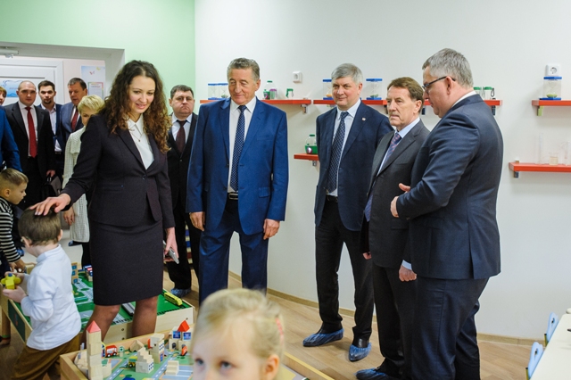 Александр Гусев и Алексей Гордеев осмотрели ясельную группу, кабинет для конструирования и моделирования, музыкальный зал.