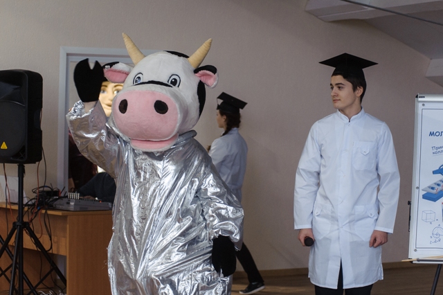 После деловой части экскурсии юные артисты «Академии молочных наук» представили гостям развлекательную программу, «запустив» в космос корову Марту, которая должна доставить космонавтам настоящее молоко.