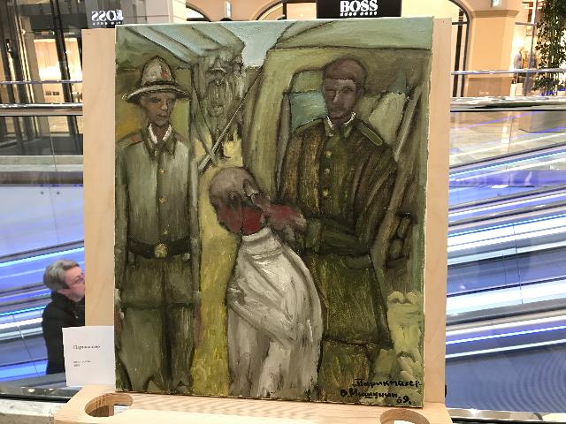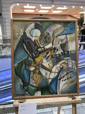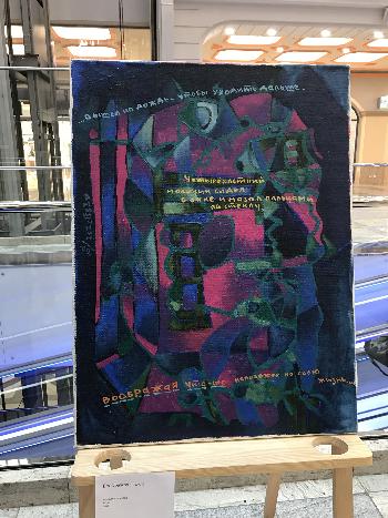 Корабли и странные персонажи, батальные сцены, афганские и сказочные мотивы, сюжеты про Нововоронежскую АЭС и воронежские реалии-вымыслы; чтобы рассмотреть изображения на 16 гигантских полотнах – надо покататься вокруг да около них на эскалаторе. С каждого этажа увидишь нечто свое – вот тебе и пища для ума и сердца. Приятно, что художник Мишунин ничего зрителю не навязывает: работы читаются в соответствии с сугубо индивидуальным интеллектом и способностью к психоанализу.