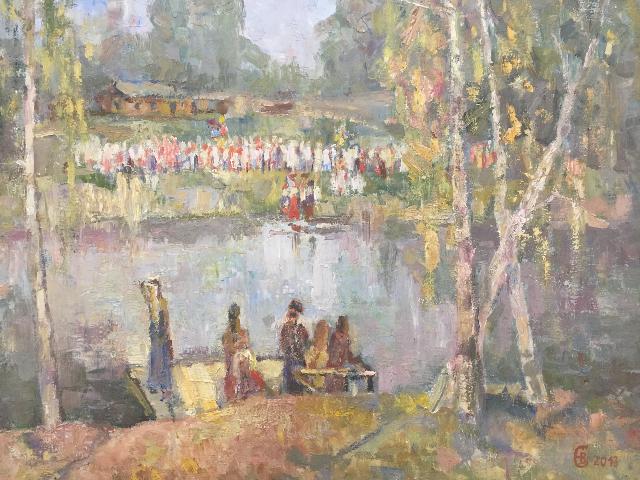 Светлана Головская, Наталья Дорохова, Светлана Хондо, Светлана Давыдова, Валерия Черкасова, Екатерина Князева-Ершова, Елена Лысенко, Наталья Мелешко, Татьяна Яковенко, Ольга Руденко, Арина Мещерякова, Татьяна Пигарева, Виктория Высоцкая. Имен много, а лейтмотив у выставки – один, как и должно быть. Он яркий, мажорный, жизнеутверждающий, потому как если даже сюжет картины предполагает не самое бравурное настроение, палитра – богатая, отчасти даже переполненная – работает на позитивное зрительское восприятие. Этим произведения представителей «Логоса» отличались всегда, и местами озадачивали некоторой похожестью. Объяснимый факт, однако школа – на то она и школа, чтобы давать людям определённые установки, учить думать и творить по заданным алгоритмам. При всём том Вячеслав Кузьмич не раз подчёркивал, что предоставляет своим девчонкам полную творческую свободу – «чтобы писали так, как нравится. Меньше руками и головой, а больше душой».