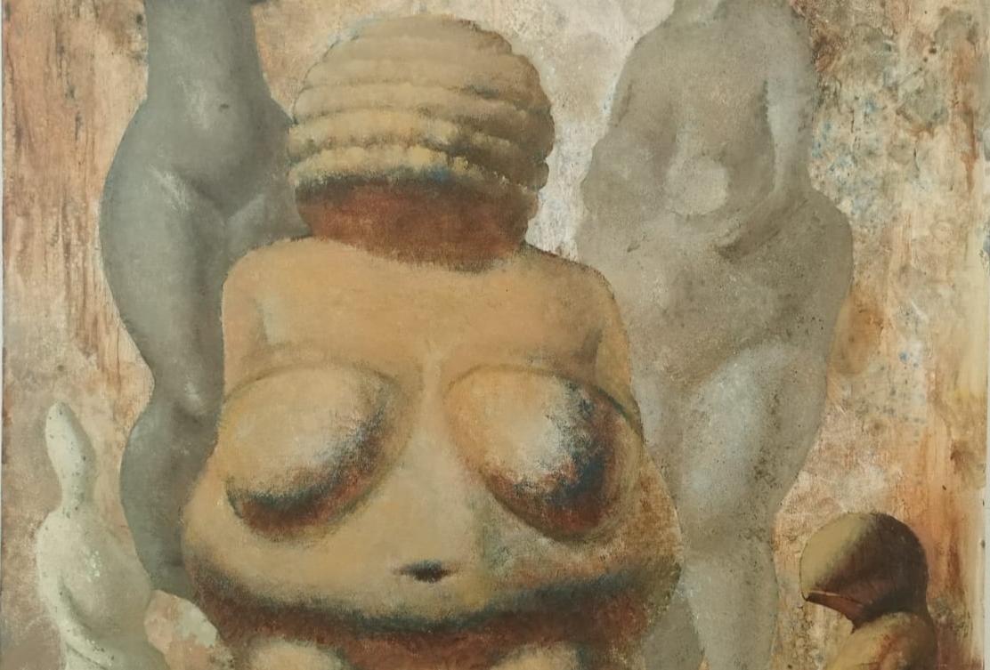 Татьяна Саяпина, автор картины «Женское начало», изобразила Венер, найденных на стоянках древнего человека.