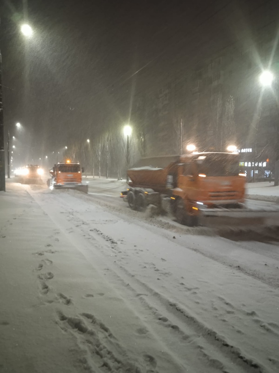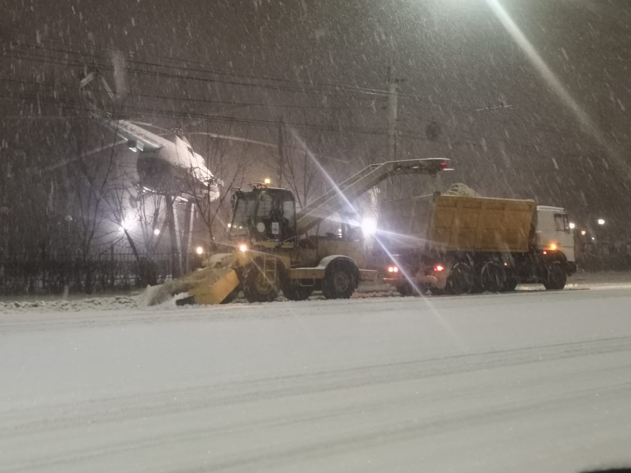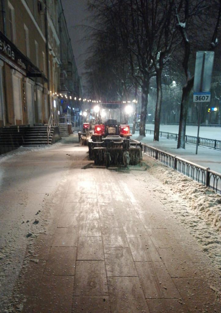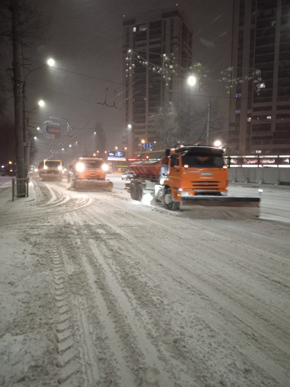 Всю минувшую ночь, при непрекращающихся осадках, несколько раз повторялся технологический цикл уборки «обработка – сгребание/подметание», дабы во время снегопада не смог образовываться накат. В ночную смену коммунальщики использовали 2106 тонн песко-соляной смеси.
