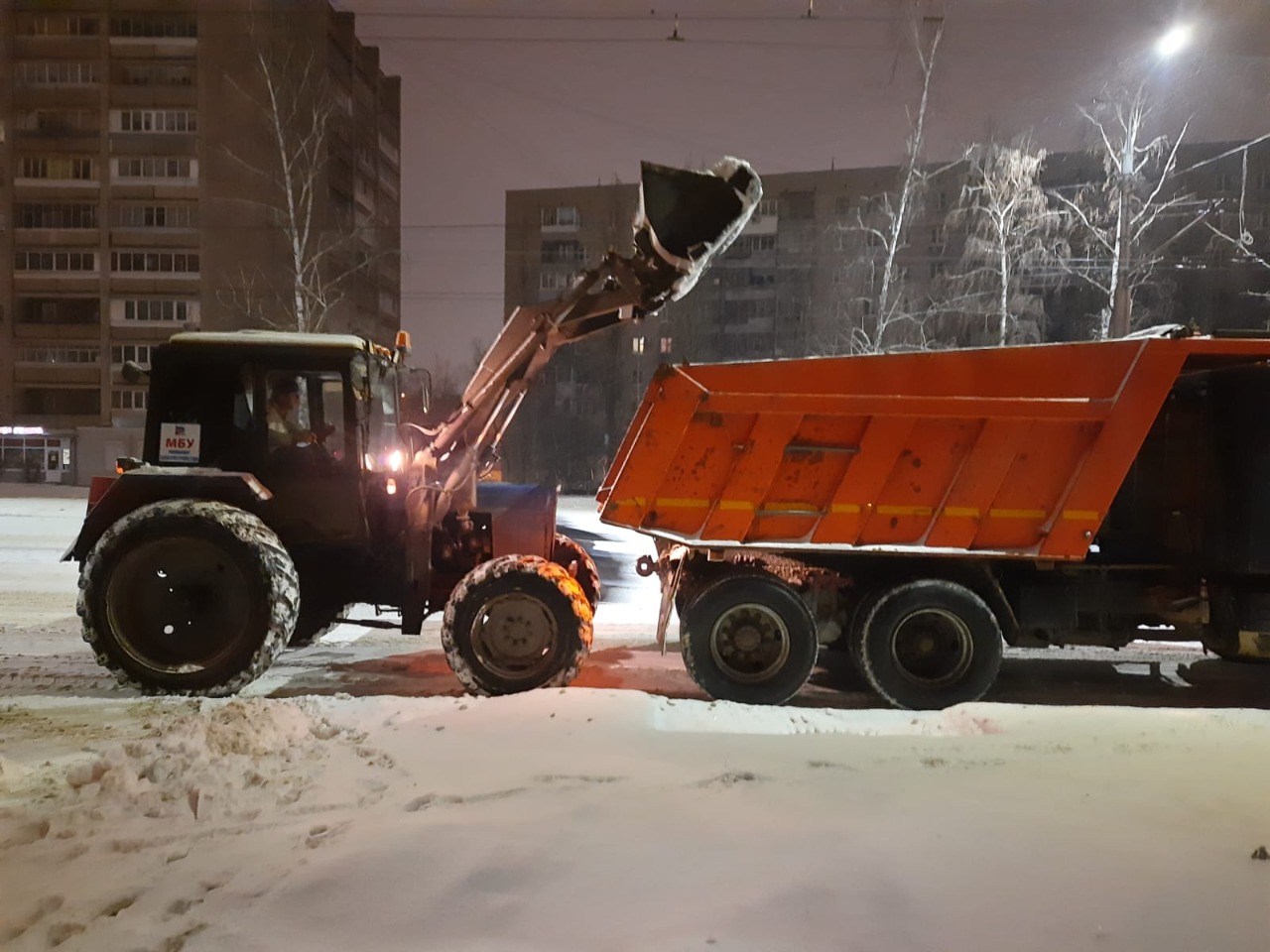 Спустя 2-4 часа после такого рода обработки, когда противогололёдный материал растворял наледь и на дороге образовывалась снежная каша, дорожные машины и трактора колоннами сгребали её в правую часть дороги. Там формировались валы для дальнейшего вывоза. К слову, только за прошедшую ночь из города вывезли свыше 2,2 тыс. кубометров убранного снега.