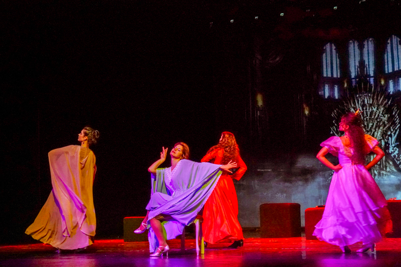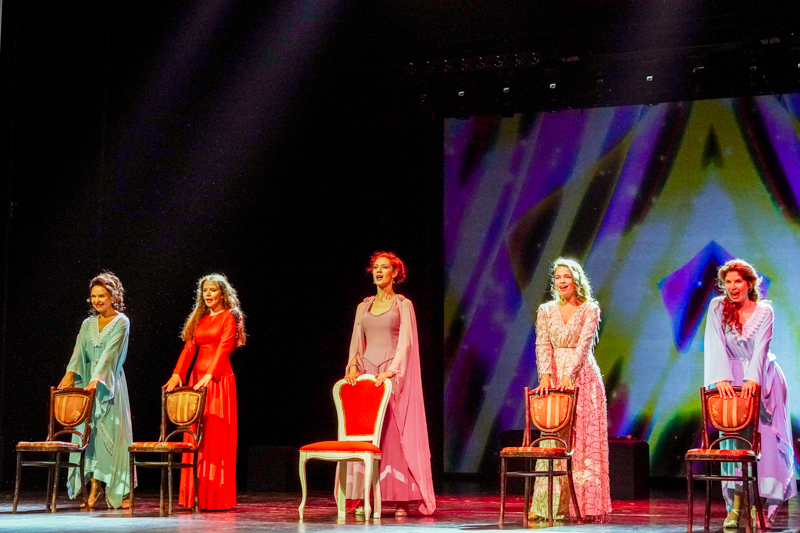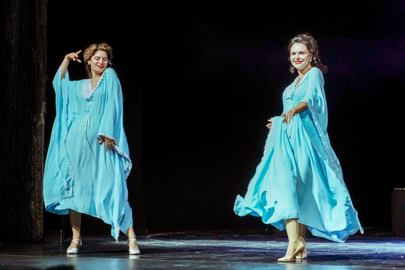 В представлении «Королевы не прощаются» грань между залом и сценой полностью стирается, и мы видим закулисье в его самых разных проявлениях. Актрисы исполняют самих себя, и каждая без исключения подавлена новостью, что сцена уходит на временный отдых, а в новом сезоне им не досталось ролей в премьерной работе. Конечно же, все это подается с долей юмора, но лейтмотив грусти прослеживался до самого конца.
