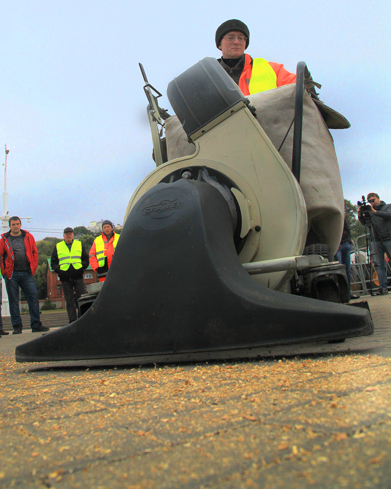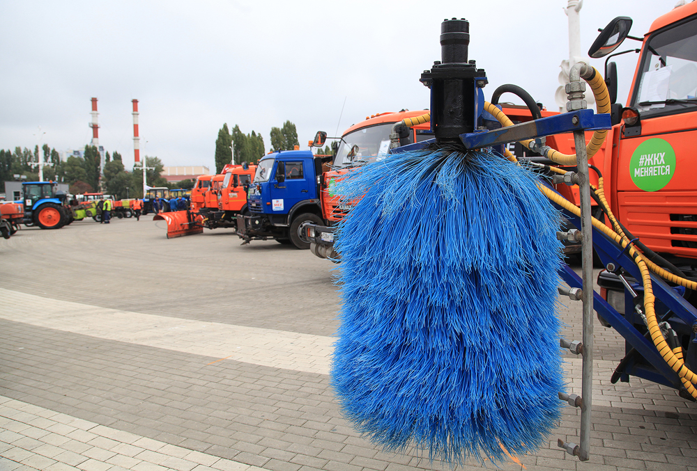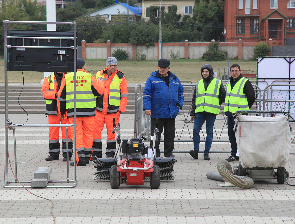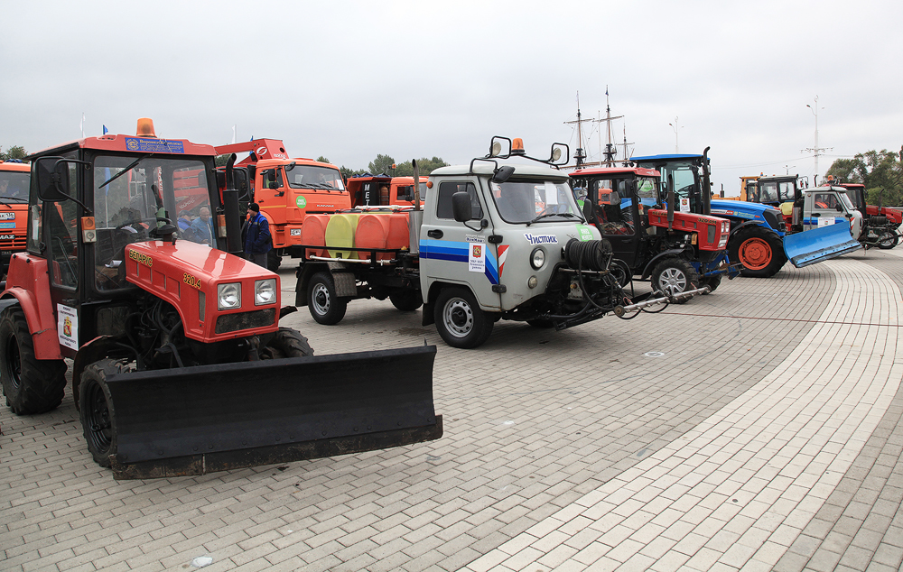 Масштабная выставка-смотр образцов коммунальной техники прошла 30 сентября на Адмиралтейской площади. На параде было представлено 35 единиц уборочных машин. Это комбинированные машины, предназначенные для уборки дорог; специализированные трактора различных моделей со щетками, а также малокоммунальная техника для уборки тротуаров.
