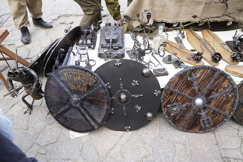 22 мастера приехали из разных городов России – Белгорода, Липецка, Ельца, Кирова, Москвы, Калуги и других. Заявив о желании участвовать, они и в этот раз получили домашнее задание от организаторов. Ранее им было предложено изготовить якоря и разные элементы судна, теперь же кузнецы ковали щиты.