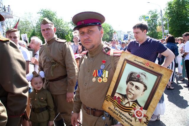 За каждой фотографией – военная судьба, за каждым именем – жизнь родного человека, полная лишений. Многие воронежцы, шагавшие в колонне рядом со своими дедами и отцами, просто не могли сдержать слёз: для них праздник Победы – не просто всенародный, а семейный.
