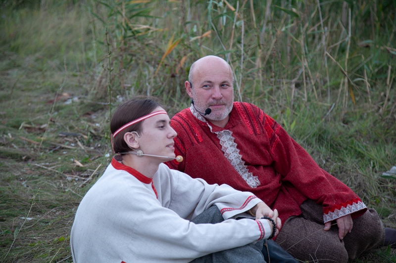 Театрализованное представление, в котором и раскрывается концептуальная задумка организаторов, происходит на главной сцене одновременно (а, вернее, поочередно) с песенными номерами. Жизнь нашего народа рисуется во всей красе до мелочей – здесь вам и быт, и отдых, и место подвигу. Дополняет картину интерактив, в нем актеры играют роли второго плана: можно увидеть отдыхающих на противоположном берегу, романтическую прогулку по озеру и даже волов, символизирующих великое переселение народов.