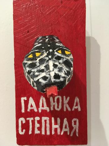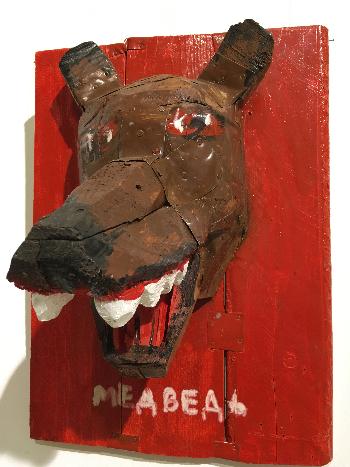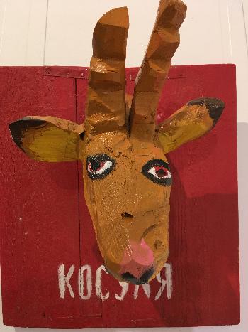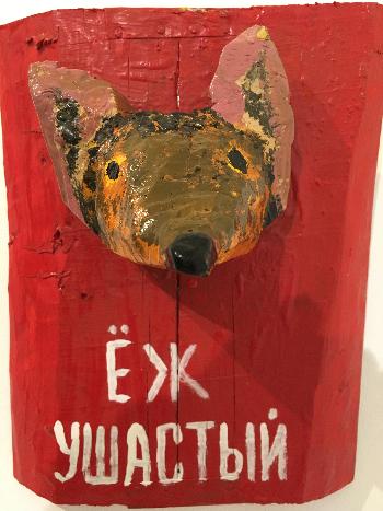Как всегда, Горшков-старший абсурден, остроумен, дерзок в художественном высказывании. И одновременно прост, местами до наива. Еще одно тому доказательство – поголовное представительство «Красной книги», размещенное во втором зале. Жутковатые экспонаты, грубо (так и хочется сказать – топорно) вытесанные из дерева, символизируют «охотничьи трофеи»: отрезанные головы зверей, птиц, рыб. Типа, бюсты чучел.