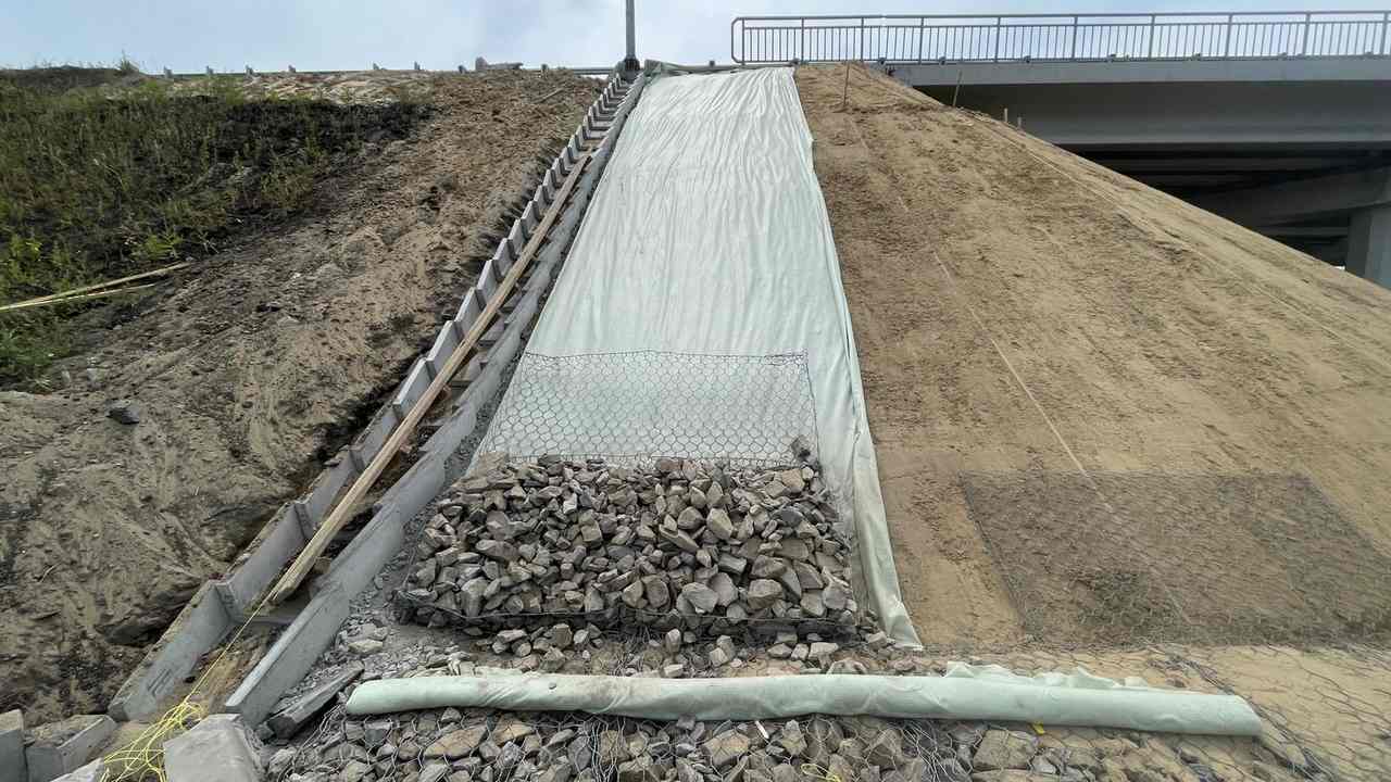 Так, на пересечении улиц Минской и Остужева рабочие расширяют участки проезжей части на подъездах к развязке, переустраивают инженерные сети, укрепляют конусы путепровода, убирают строительный мусор, косят траву и тому подобное.