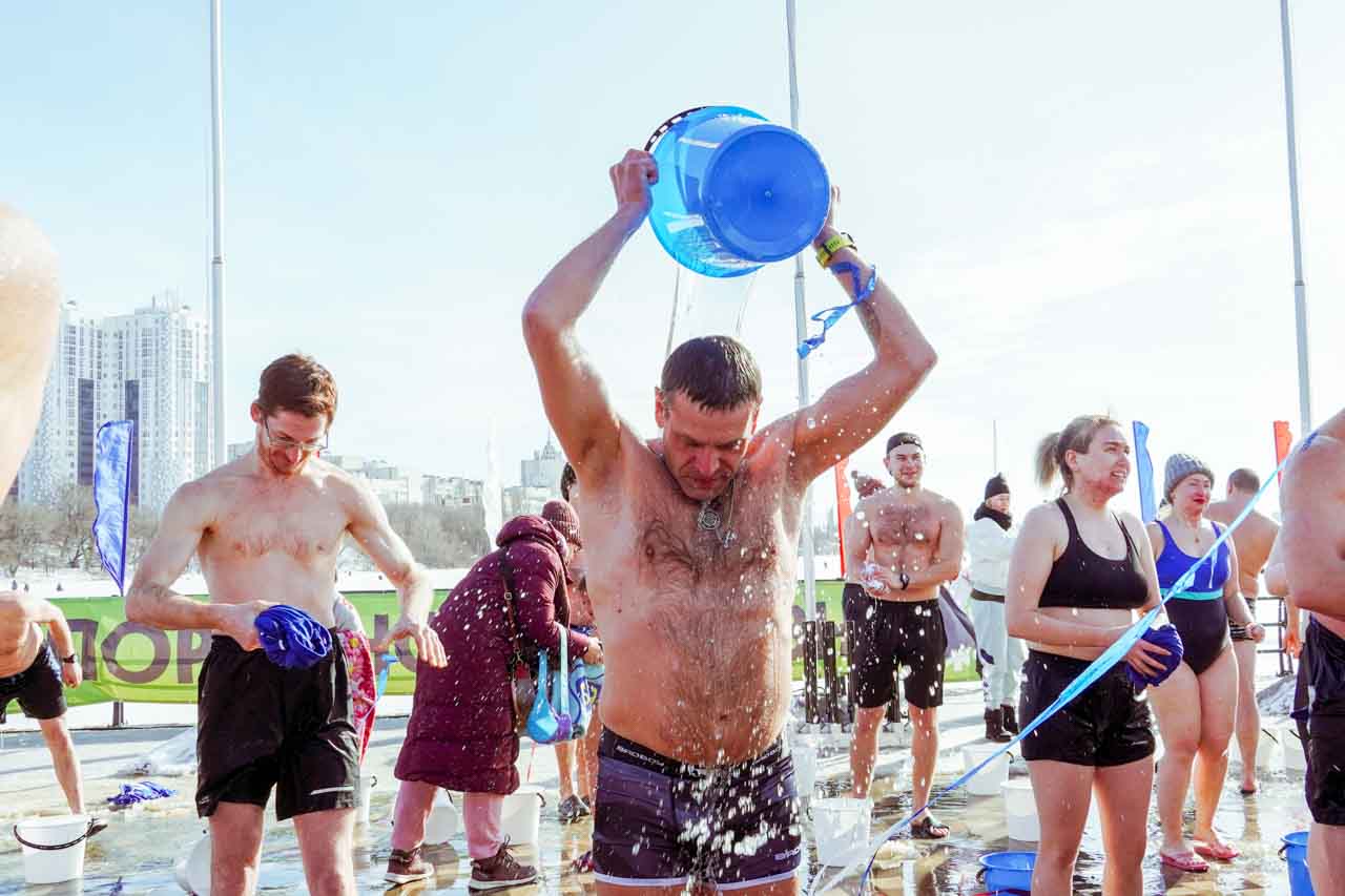 Принять участие в обливании могли все желающие старше 7 лет, и на дамбе собрались люди самого разного возраста, многие из которых впервые проходили посвящение в «моржи». Павел Чибисов, имея 18-летний опыт работы с детьми, рассказал, как привлекать молодёжь к подобным акциям по укреплению тела и духа: