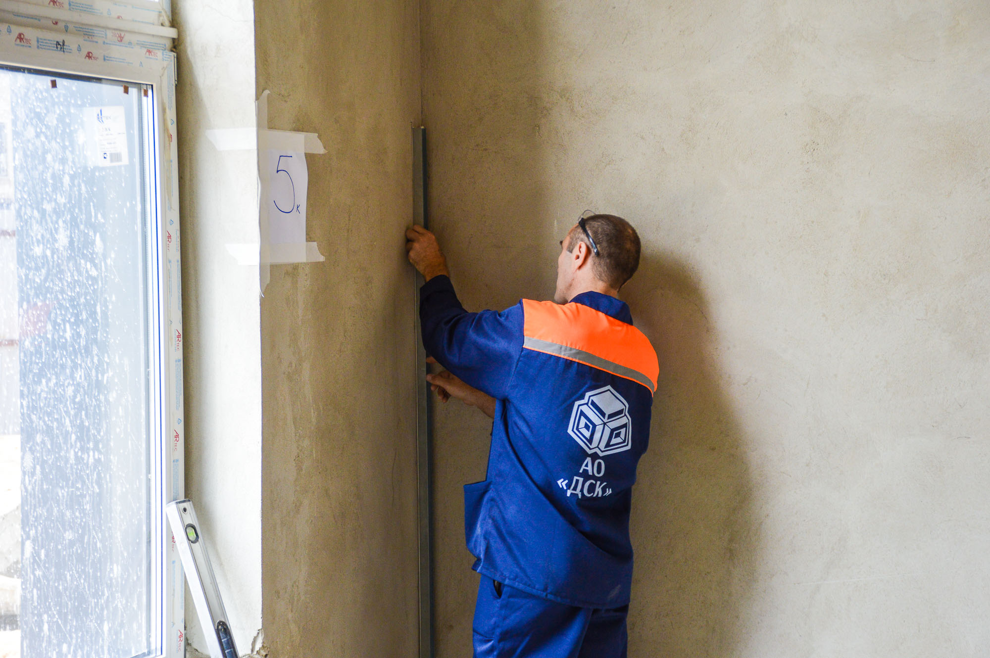 Участникам-штукатурам нужно было оштукатурить поверхность площадью 4,5-5,5 квадратных метра за 4 часа.